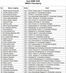 Keberhasilan ini diharapkan menjadi motivasi bagi siswa lainnya untuk terus berprestasi dan menjaga tradisi unggul SMAN 3 Kayuagung dalam menembus perguruan tinggi negeri. (real/sbn)